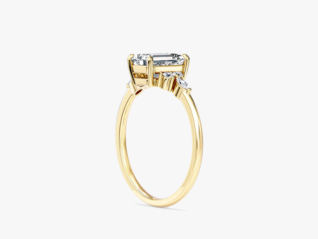 The Round and Marquise Cluster Emerald Lab Grown Diamond Engagement Ring is a distinctive and modern piece that seamlessly combines classic and contemporary design elements. This ring features a cluster arrangement of lab-grown diamonds, creating a visually stunning and dynamic composition.