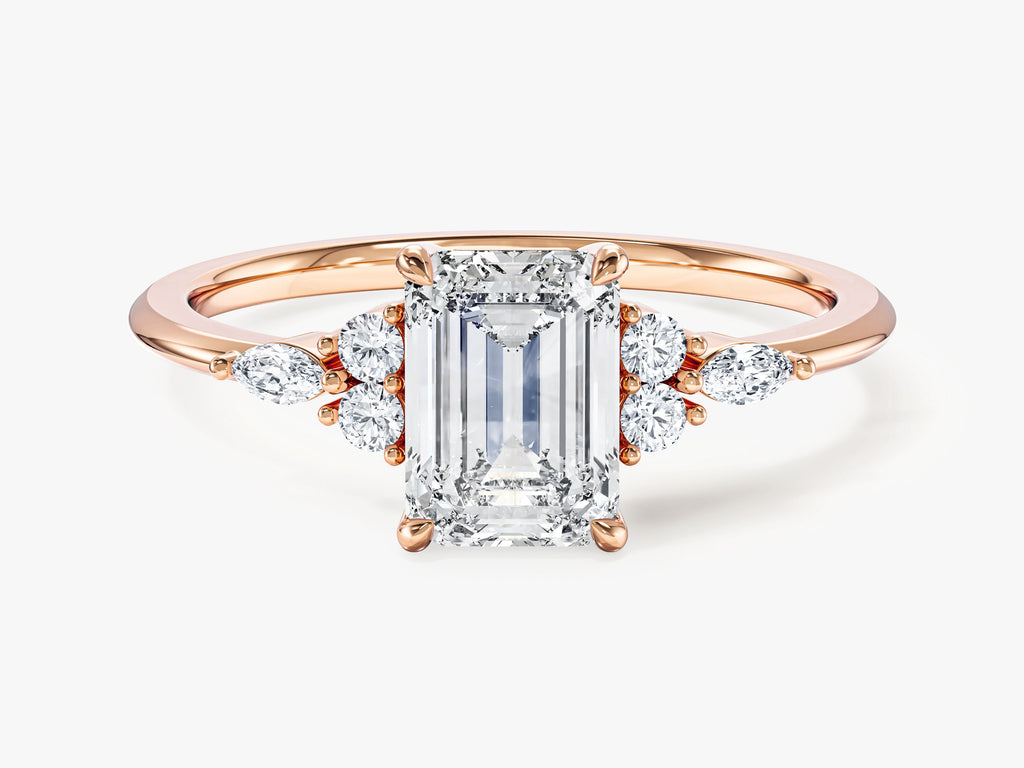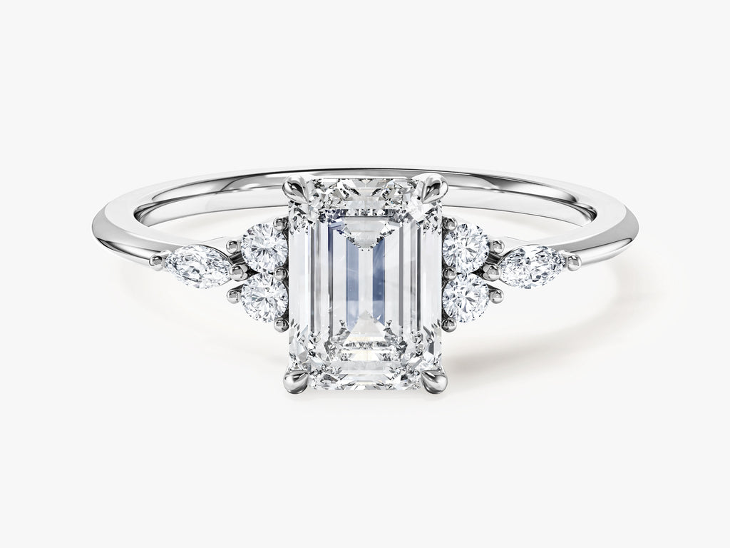 Round and Marquise Cluster Emerald Lab Grown Diamond Engagement Ring (1.00 CT)