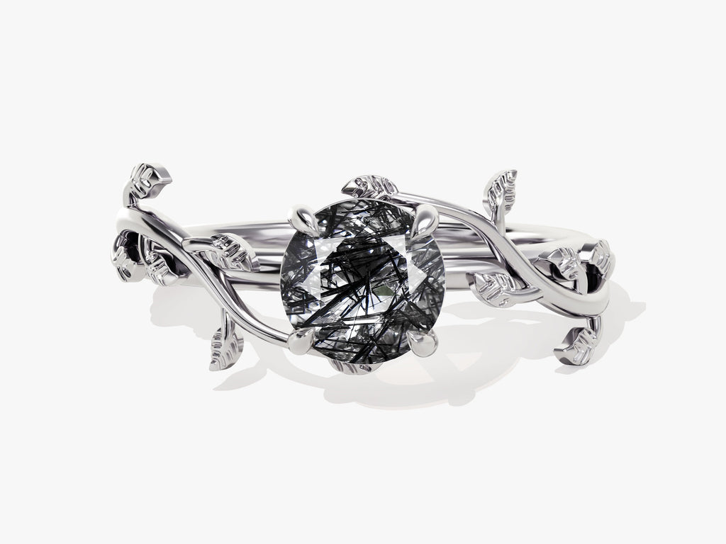Round Black Rutilated Quartz Nature Inspired Engagement Ring