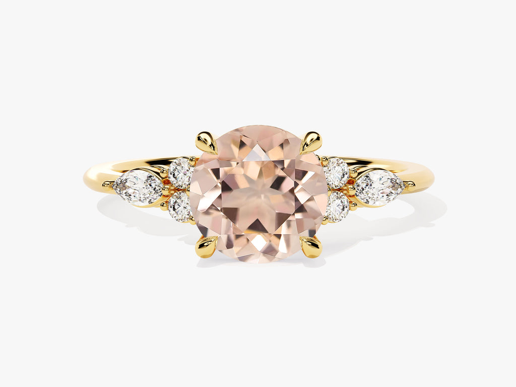 Round Cut Peach Morganite Engagement Ring with Marquise and Round Sidestones