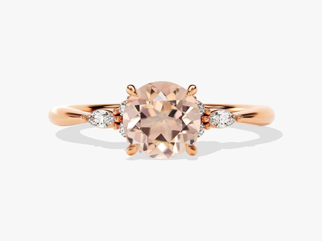 Round Cut Peach Morganite Engagement Ring with Marquise Sidestones