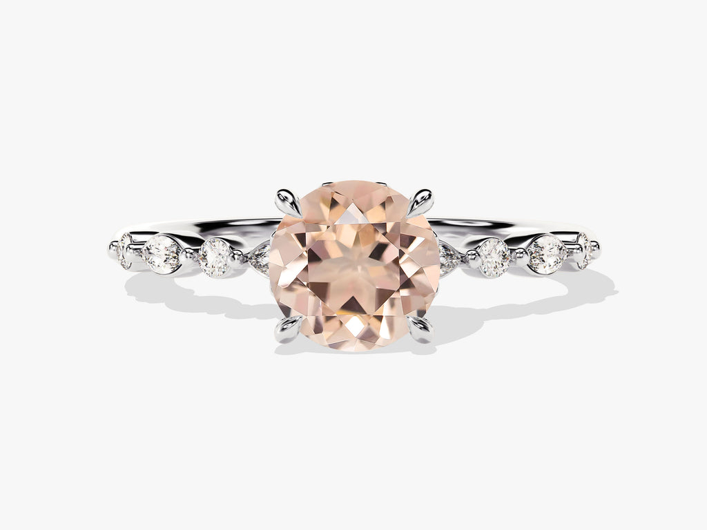 Round Cut Peach Morganite Engagement Ring with Round and Marquise Sidestones