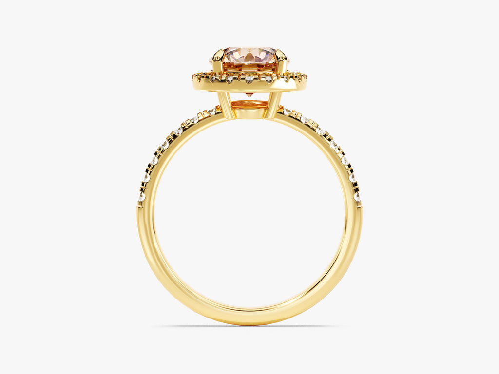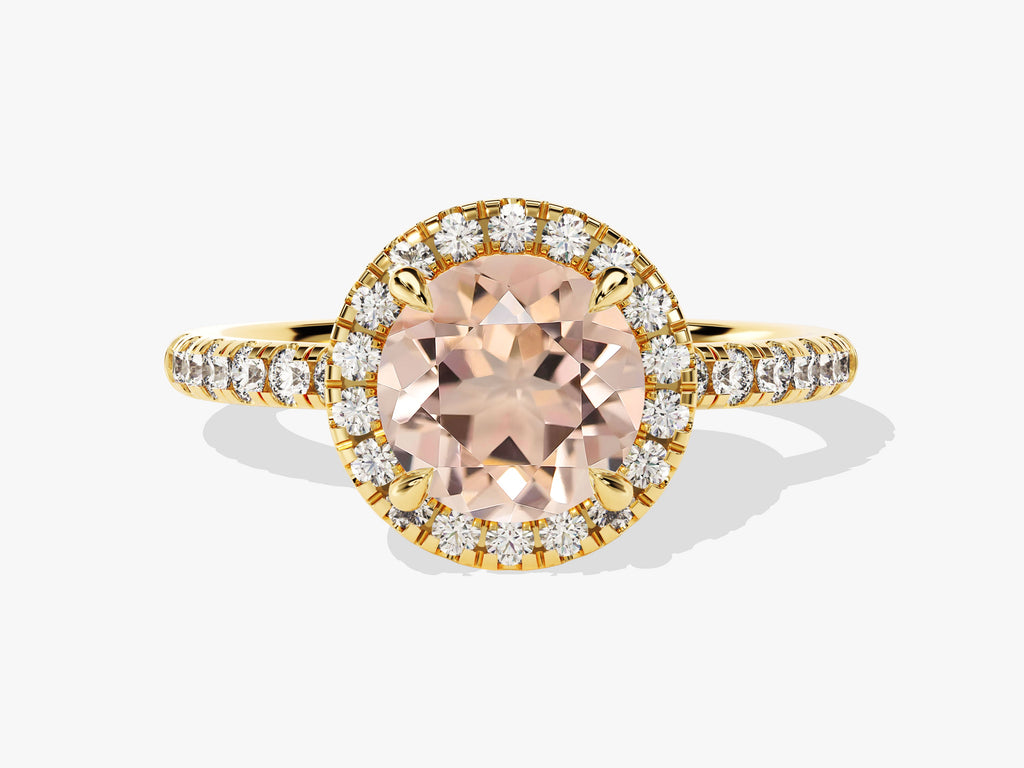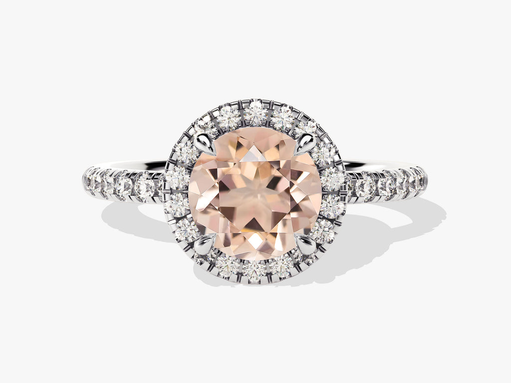 Round Cut Peach Morganite Halo Engagement Ring with Sidestones