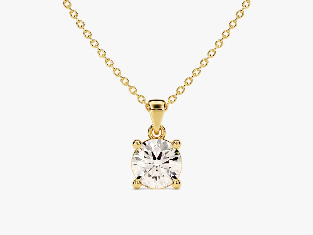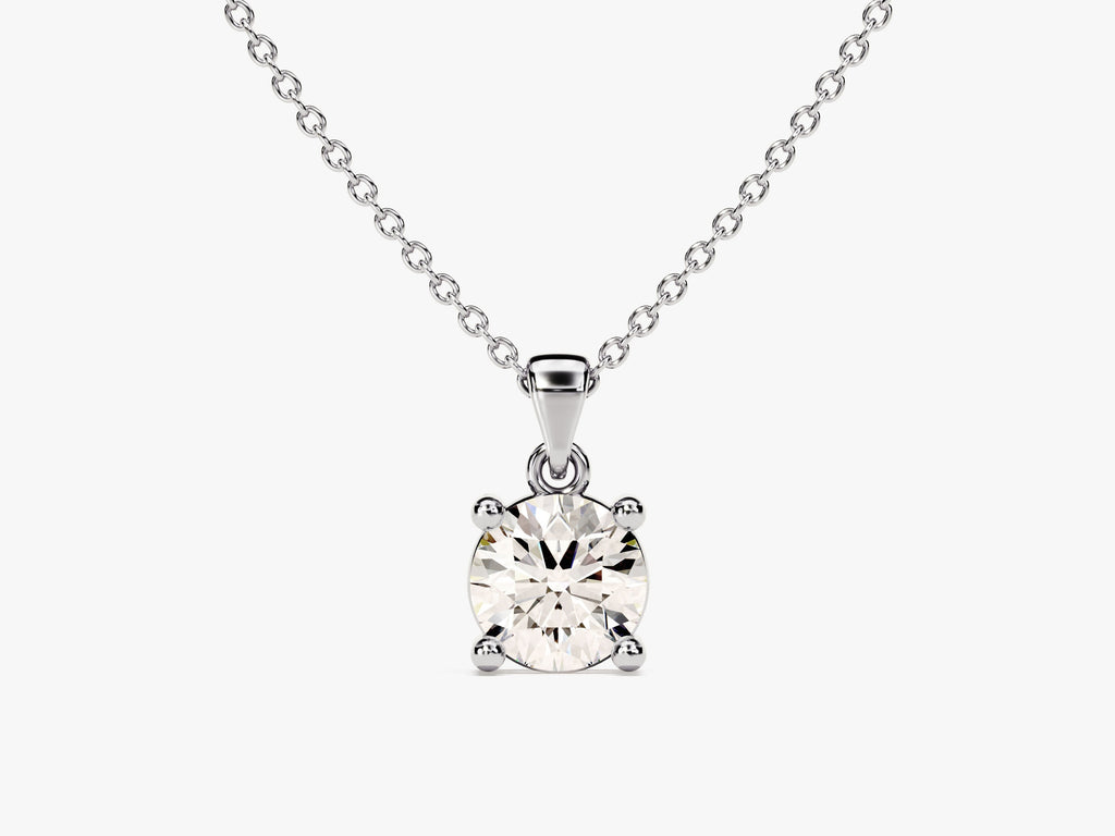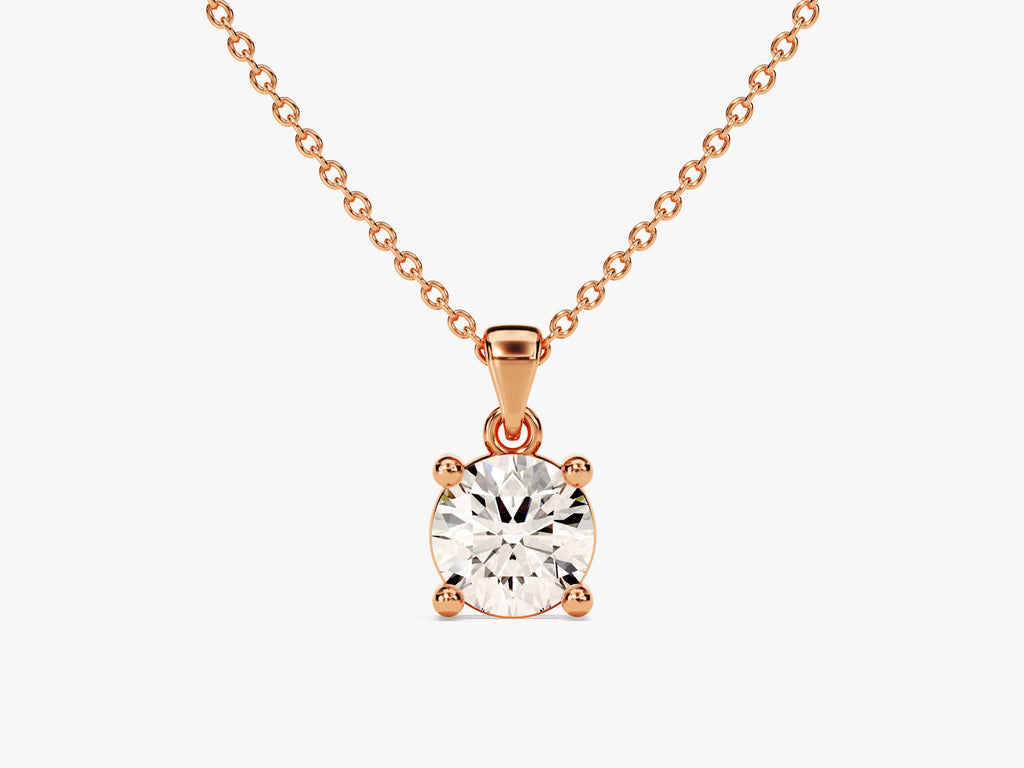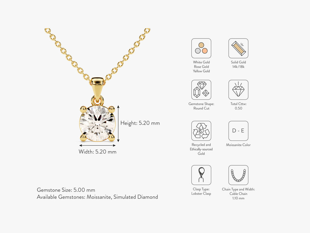 Designed to be the perfect match for any outfit, this pendant is elegant and glamorous. The round-cut lab grown diamond or moissanite gives a sleek and polished look that is irresistible.