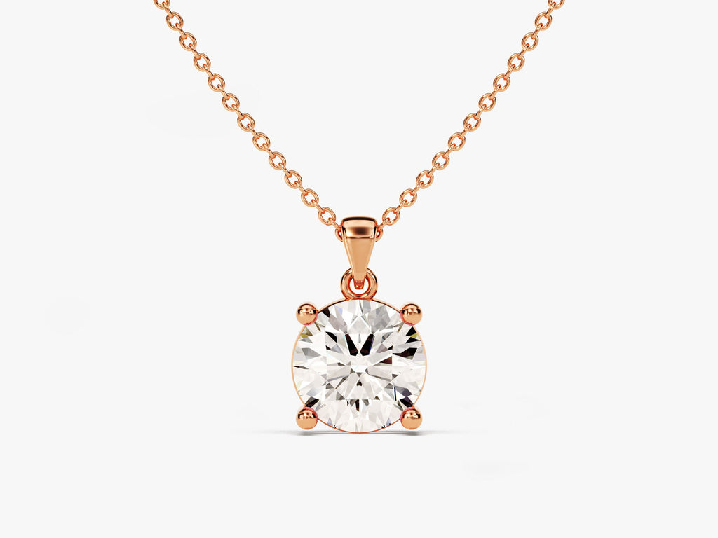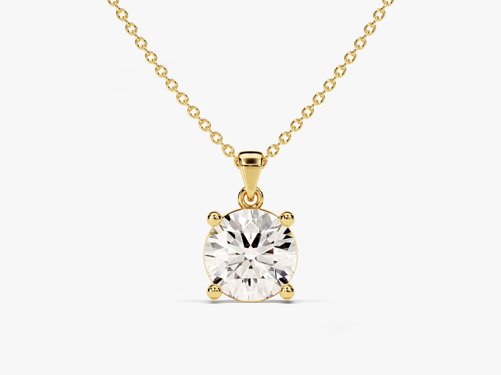 Designed to be the perfect match for any outfit, this pendant is elegant and glamorous. The round-cut lab grown diamond or moissanite gives a sleek and polished look that is irresistible.