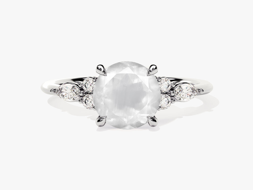 Round Moonstone Engagement Ring with Moissanite Sidestones