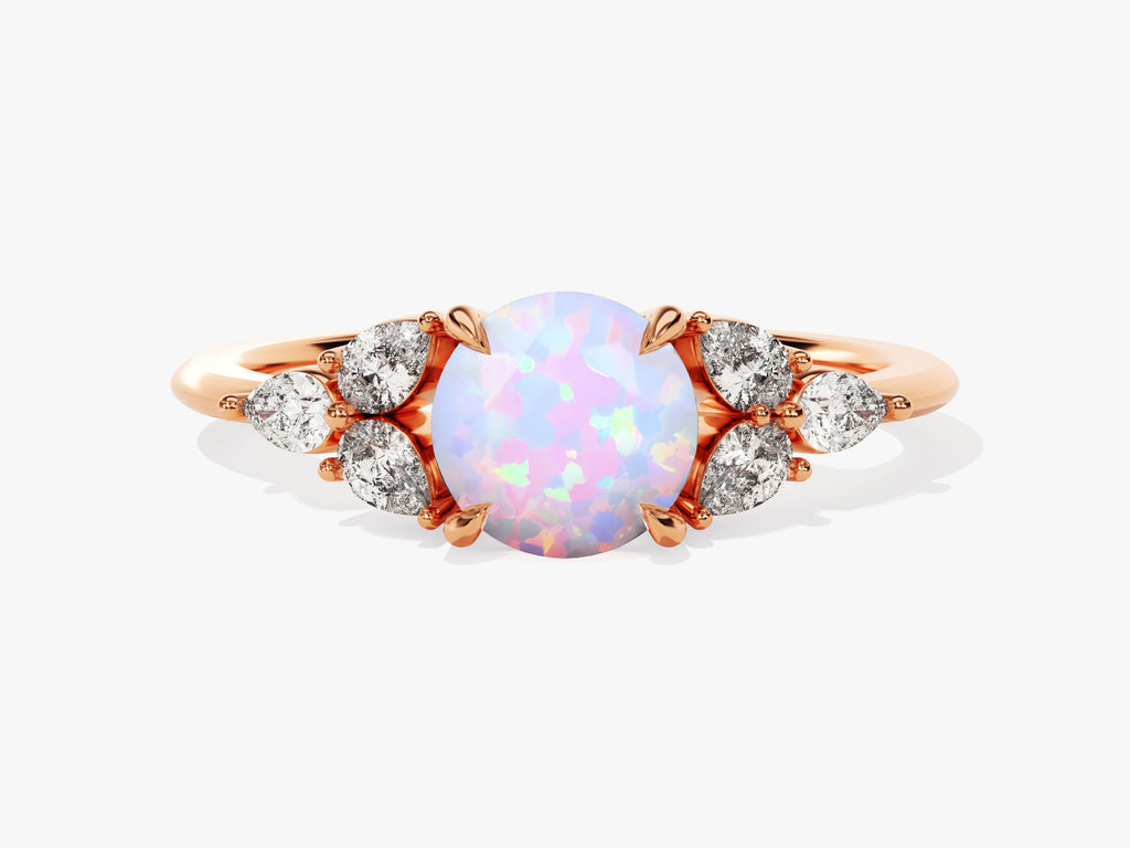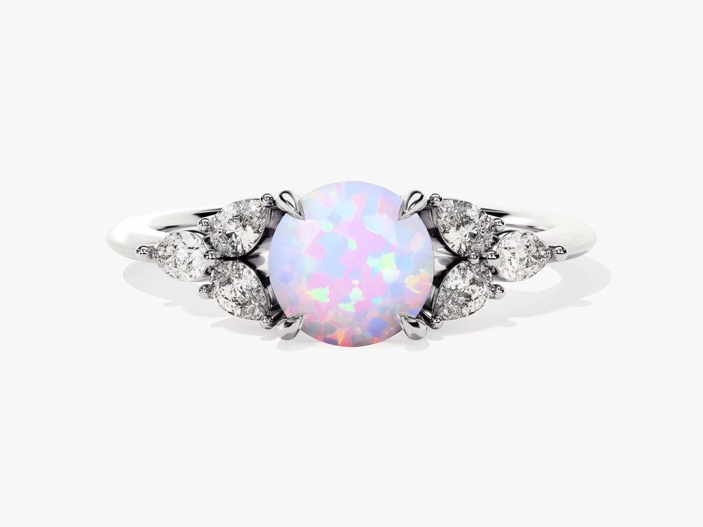 Round Opal Engagement Ring with Pear Moissanite Sidestones