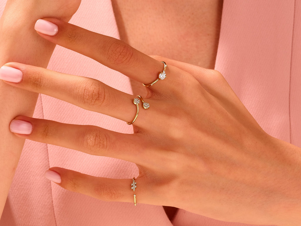 This luxurious Scattered Ring features carefully scattered diamonds or moissanite that create a stunning piece of jewelry. Crafted with quality materials, it's sure to be an eye-catching accessory to your collection.