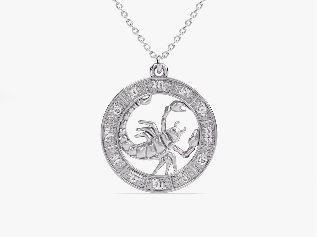 At the heart of this necklace is a meticulously crafted scorpio charm, fashioned from luxurious solid gold, gold vermeil or sterling silver. The charm prominently features the distinctive symbol associated with scorpio – the Scorpion. The design is intricately detailed, capturing the essence of mystery and intensity that characterizes Scorpios.