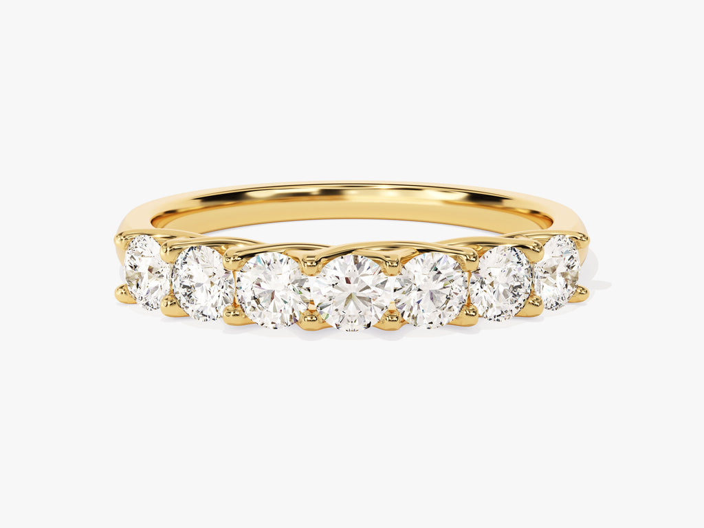 Seven round diamonds sparkle exceptionally in a delicate trellis setting, which makes it stand out from the crowd. With this graceful design, it becomes a beautiful and meaningful keepsake of romance and togetherness. After all, your love deserves nothing less than perfection.