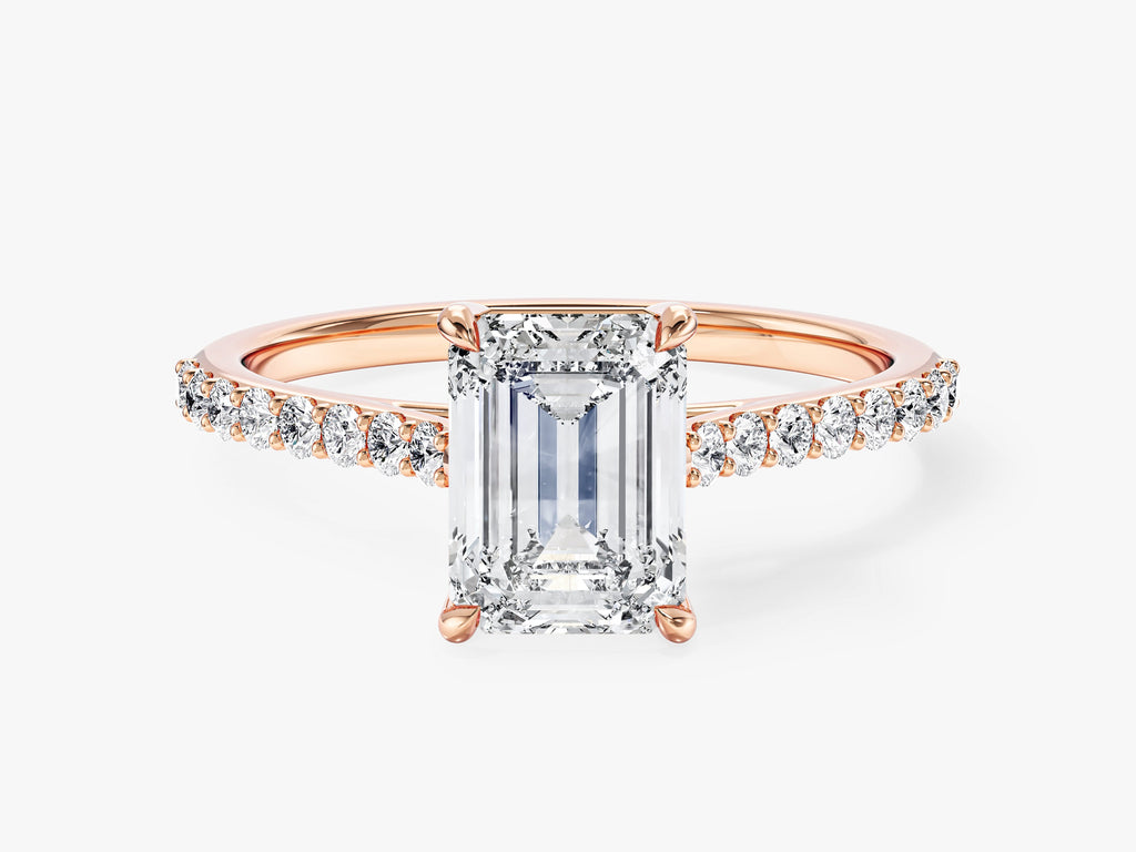 Sidestone Accent Emerald Cut Moissanite Engagement Ring