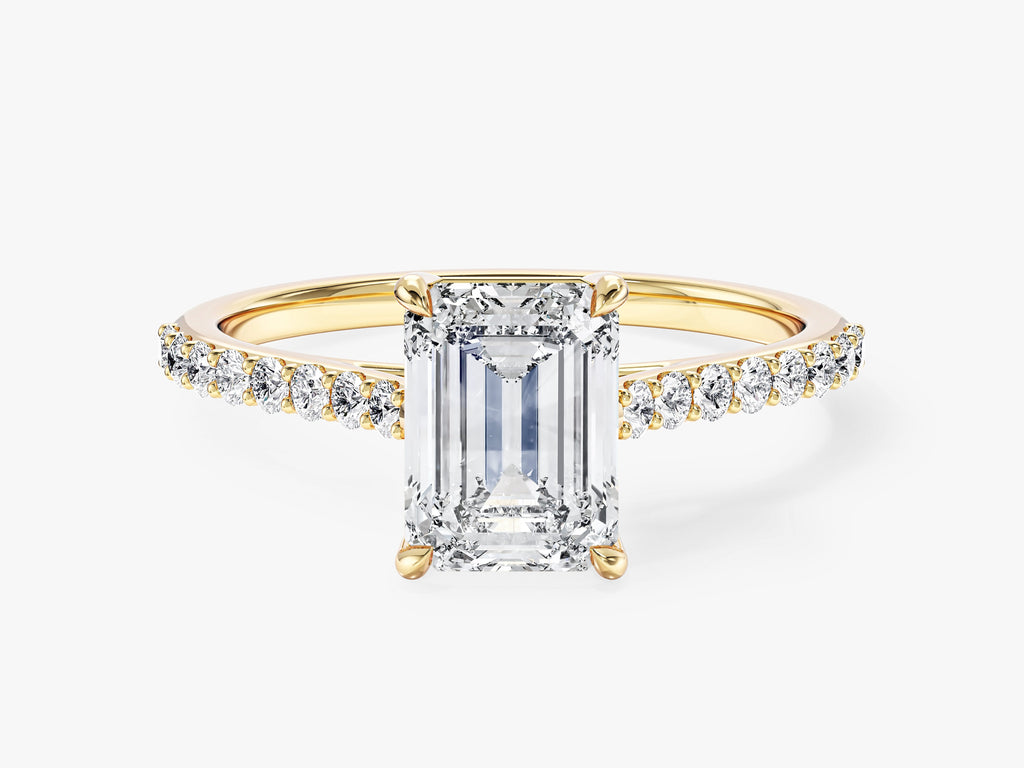Sidestone Accent Emerald Cut Natural Diamond Engagement Ring