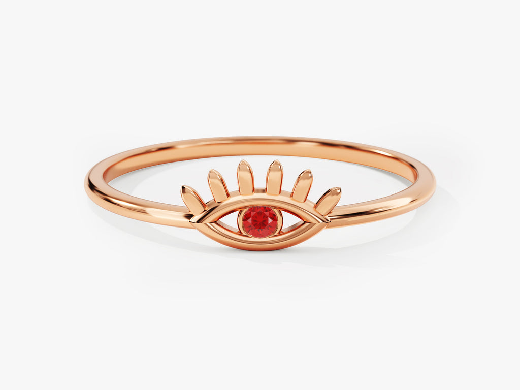 The Single Birthstone Evil Eye Ring is a stylish, protective piece that blends symbolism with personalization. Featuring a sleek evil eye design centered around a single shimmering birthstone, this ring symbolizes protection, good fortune, and individuality. Customize it with your chosen birthstone for a meaningful and versatile accessory.