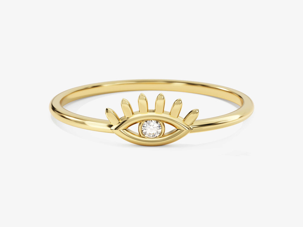 This beautiful Single Evil Eye Ring is handcrafted by our team of skilled artisans. It’s made of gold vermeil, sterling silver or solid gold. Features a diamond - moissanite stone that is set carefully to create this gorgeous and meaningful ring. Wear it as a reminder to always be good and do the right things.