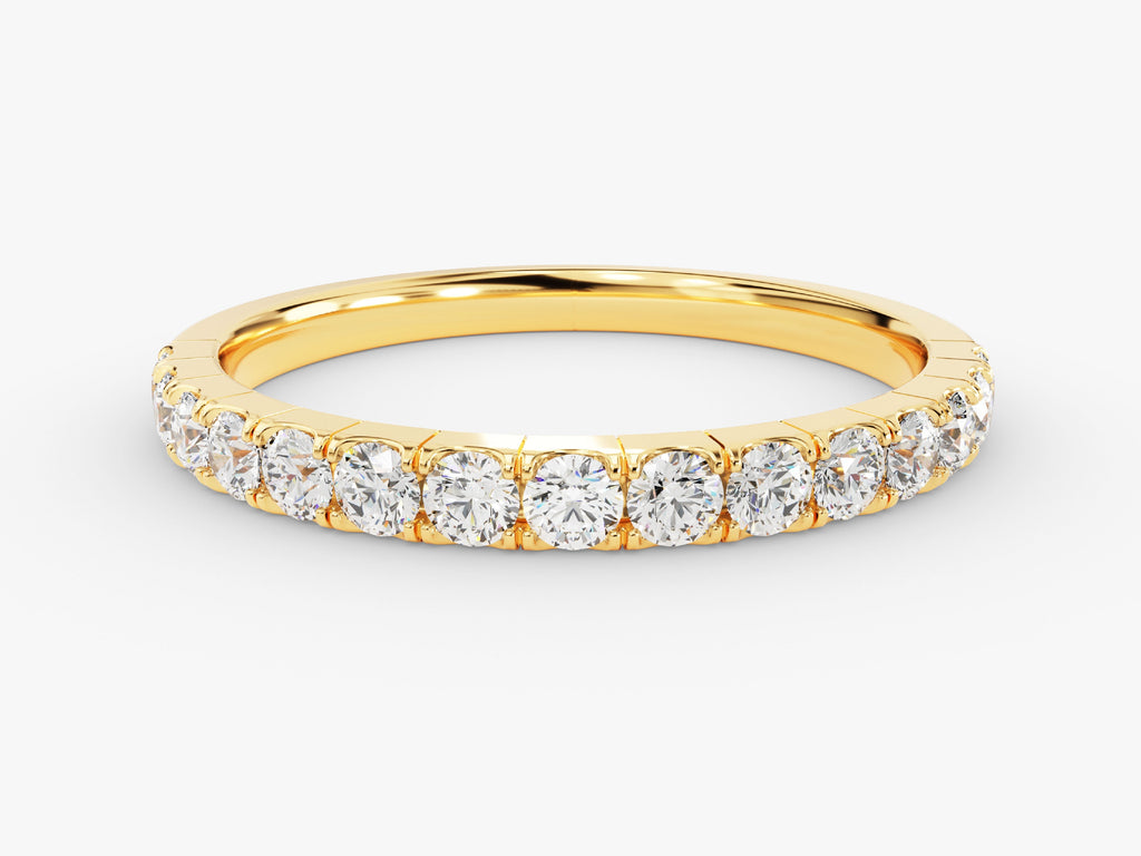 This stunning diamond half-eternity band is the perfect way to add everyday sparkle to your finger. Delicate pavé diamonds shine halfway around the band and create a beautiful, modern and timeless design. It is crafted with high-quality materials and expert care so that it becomes a cherished symbol of your story.