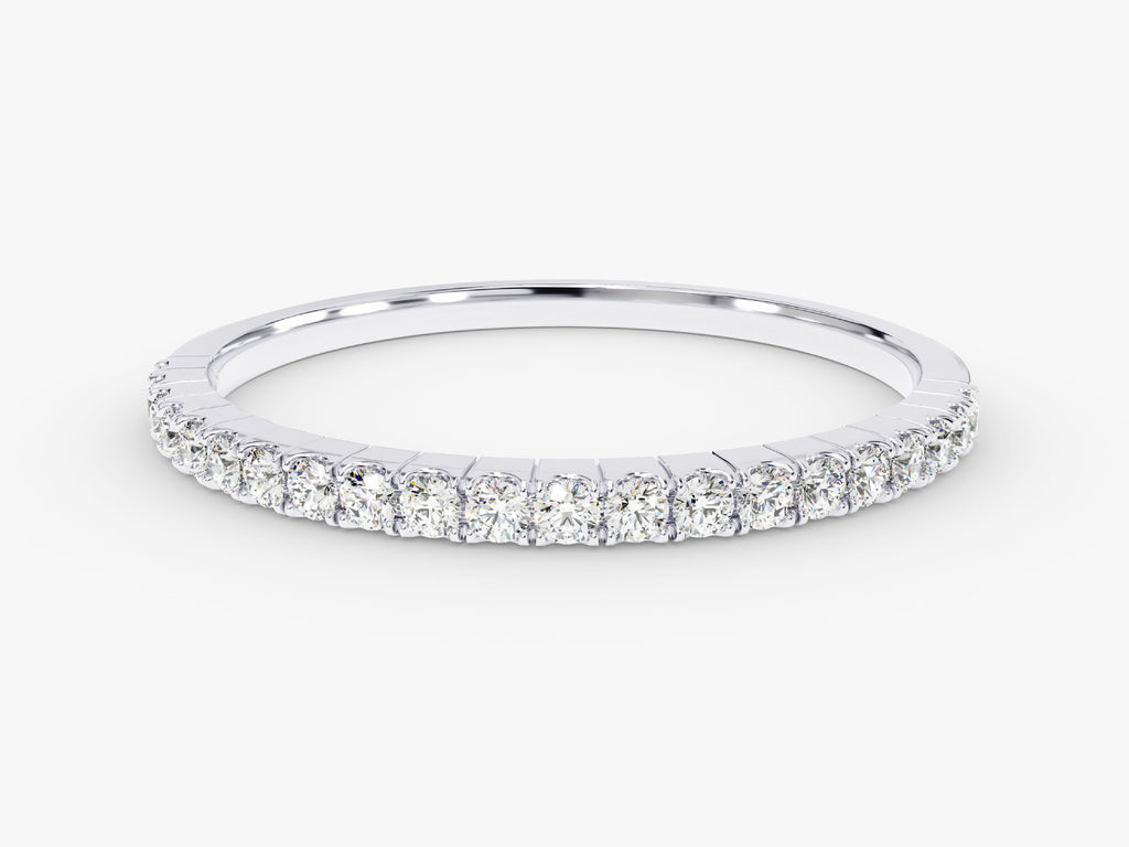 Make every moment sparkle with our half eternity diamond band. This is a simple yet eye-catching band that will look great alone or paired with other rings. It is designed with comfort and durability in mind so that you can wear it every day without worry.