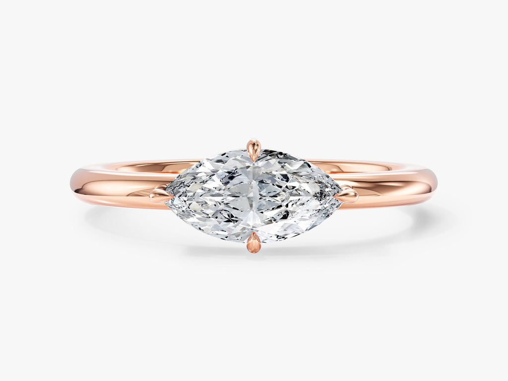 Clean, contemporary, and effortlessly stylish, this east-west solitaire brings a fresh perspective to a classic shape. The horizontally set center stone creates a sleek, elongated look that feels both minimal and distinctive. Simple yet striking, it’s the perfect choice for those who appreciate understated design with a modern twist.