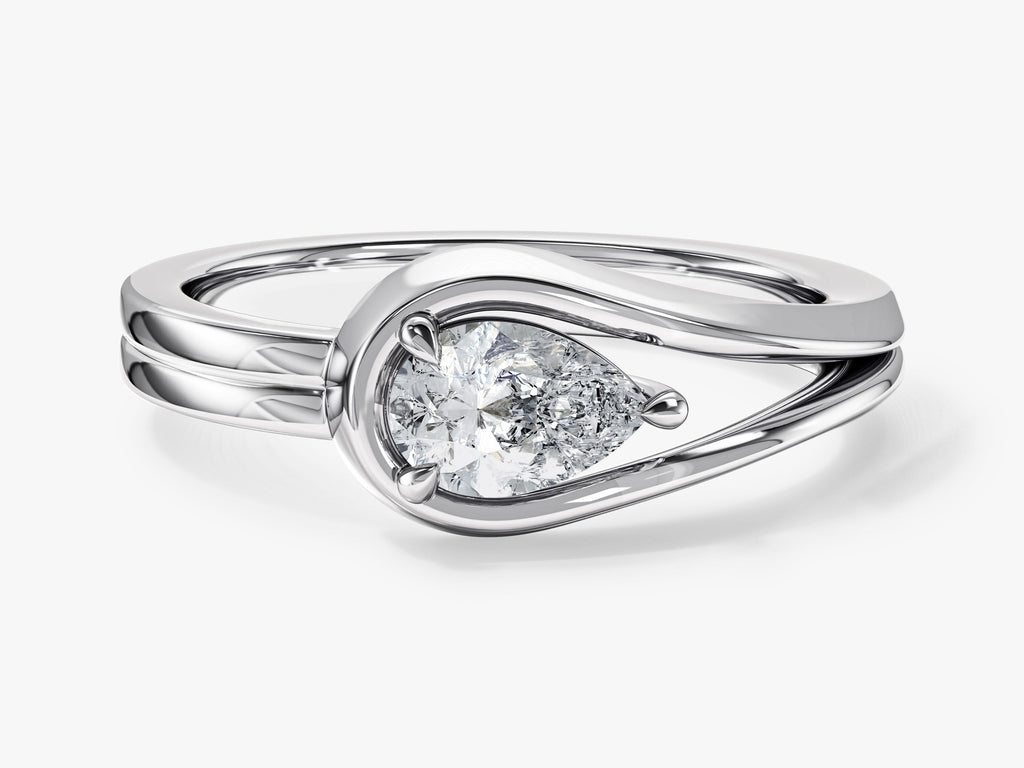 Elegant and modern, this design features a refined split-shank band that gracefully frames a radiant moissanite center. The open setting enhances brilliance from every angle, creating a sense of lightness and movement. Perfect for those drawn to sophisticated simplicity, it embodies modern romance with a timeless edge.