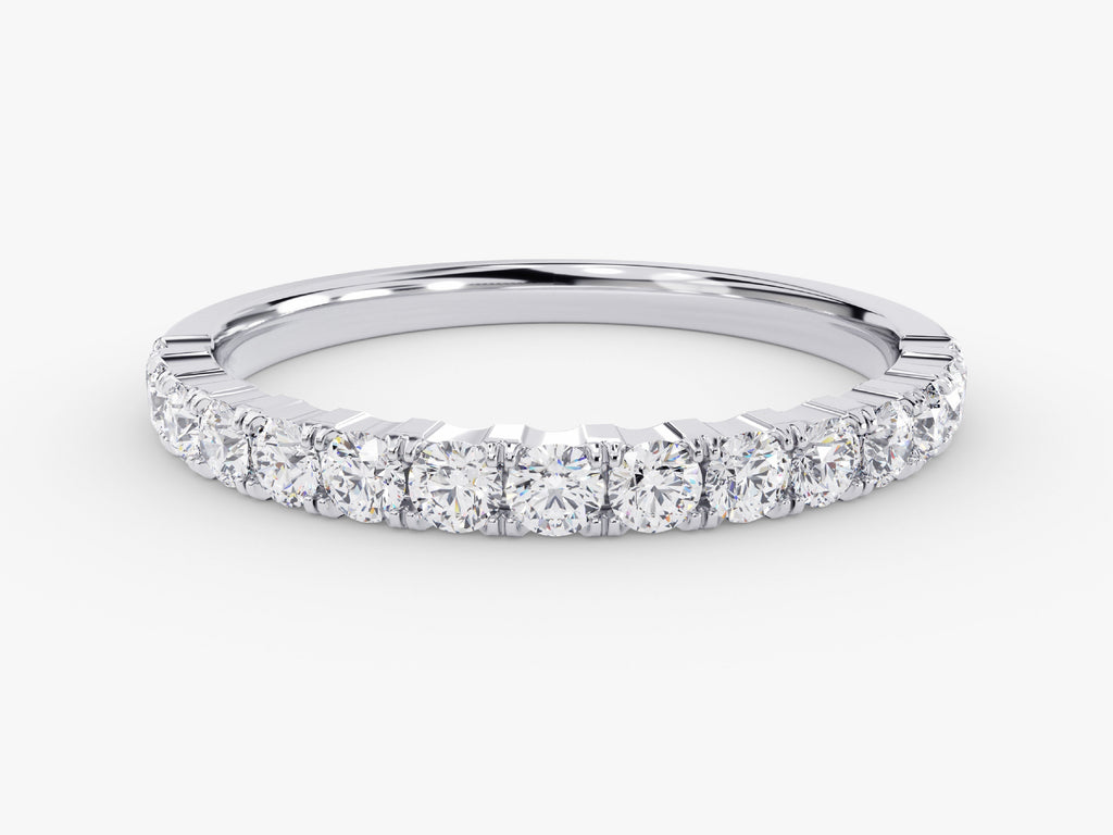 With our stella half eternity band, you can celebrate your union with a symbol of love that is as timeless and radiant as your bond. Sparkling diamonds set halfway around the band symbolize the unending nature of your love story and will shine forever as brightly as your love.
