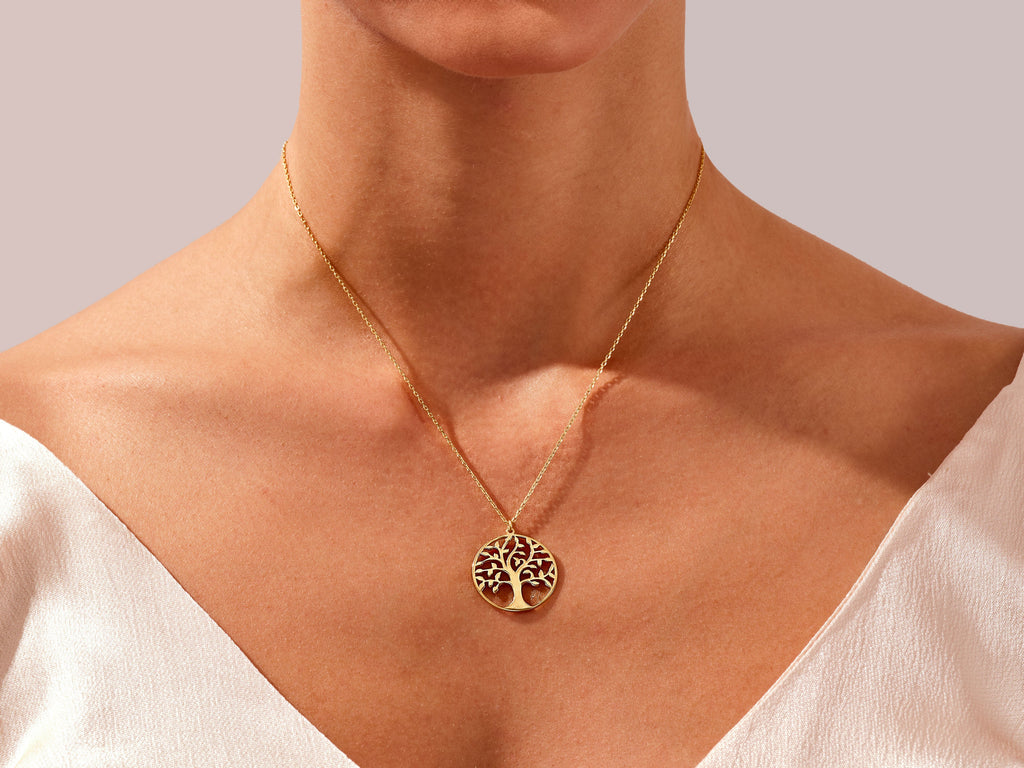 Celebrate the essence of life with our Tree of Life Necklace in radiant solid gold, gold vermeil or sterling silver. Meticulously crafted, this enchanting piece features a delicate chain and a pendant showcasing the intricate details of a majestic tree, symbolizing growth, strength, and the interconnectedness of all living things.