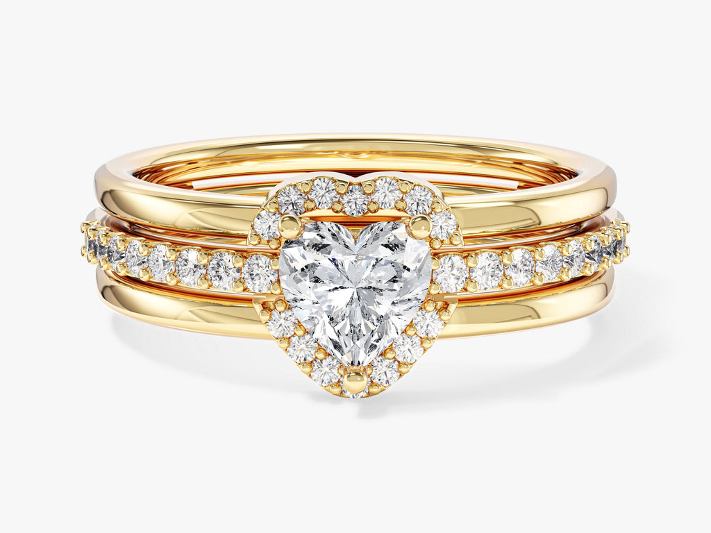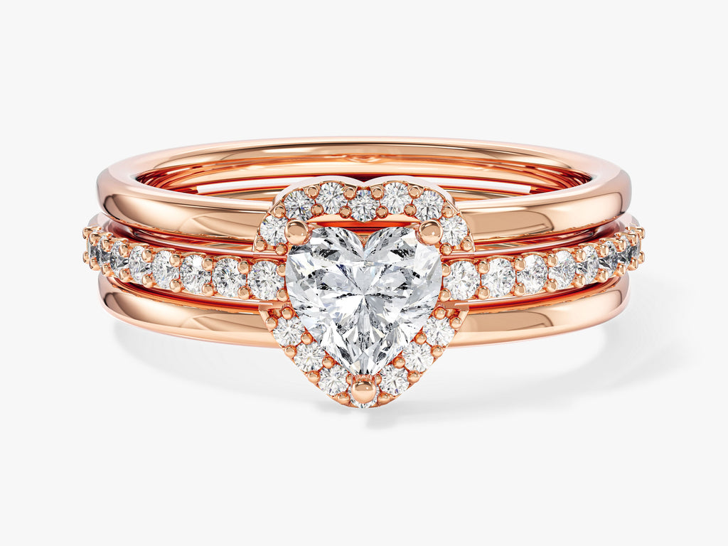 Romantic and contemporary, this design features heart-shaped lab grown diamond that symbolize love, unity, and timeless connection. Set on a sleek modern band, the trio band creates a captivating symmetry. Delicate yet striking, it’s a perfect balance of sentiment and sophistication for the modern romantic.