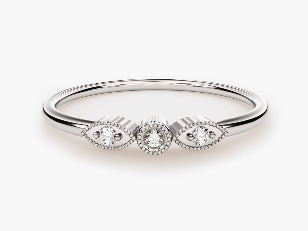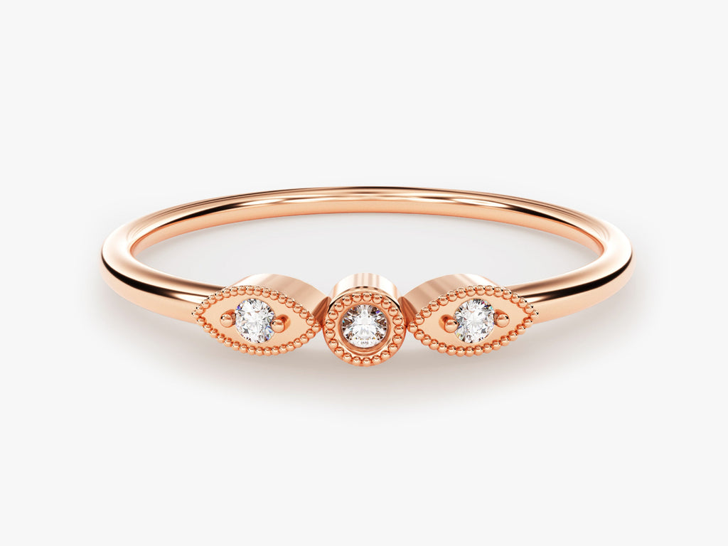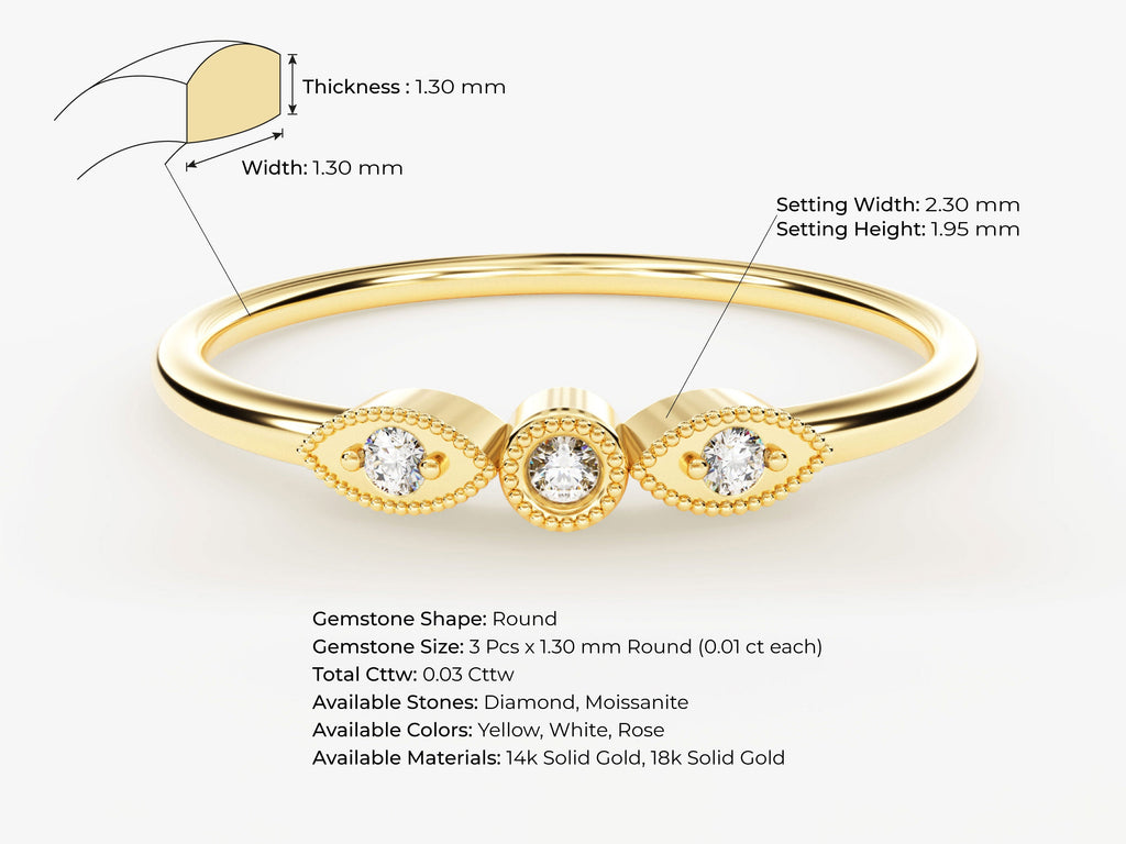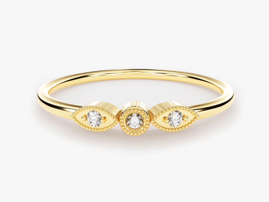 The Trio Milgrain Ring is a captivating and elegant piece of jewelry that seamlessly combines timeless design with modern ethics. This exquisite ring crafted from gold vermeil, sterling silver or solid gold features stunning diamonds - moissanite, carefully selected for their exceptional quality and brilliance.