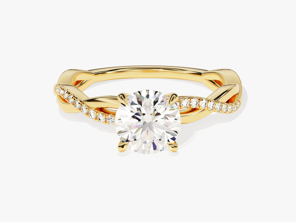 Enchanting and nature-inspired, this diamond engagement ring in 14k gold features 20 brilliant side stones on a twisted band to complement your round center stone.