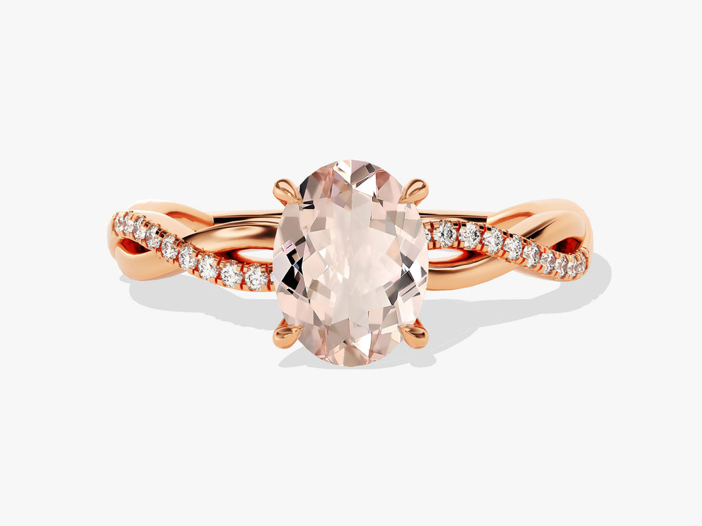 Twisted Oval Cut Peach Morganite Engagement Ring with Sidestones