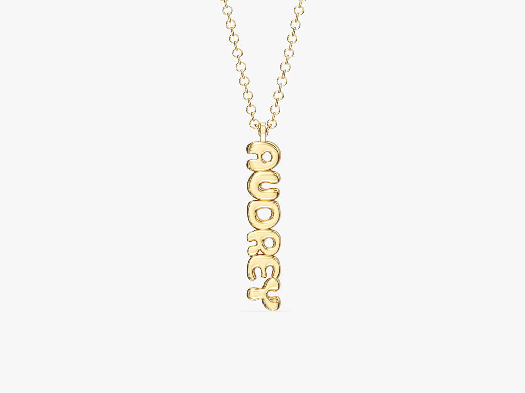More than just a necklace, it’s a personal statement. The Vertical Bubble Name Necklace, available in solid gold, gold vermeil, or sterling silver, features a playful yet refined design that brings your name or chosen word to life. A meaningful piece that blends modern charm with timeless style—perfect for gifting or keeping close, every day.