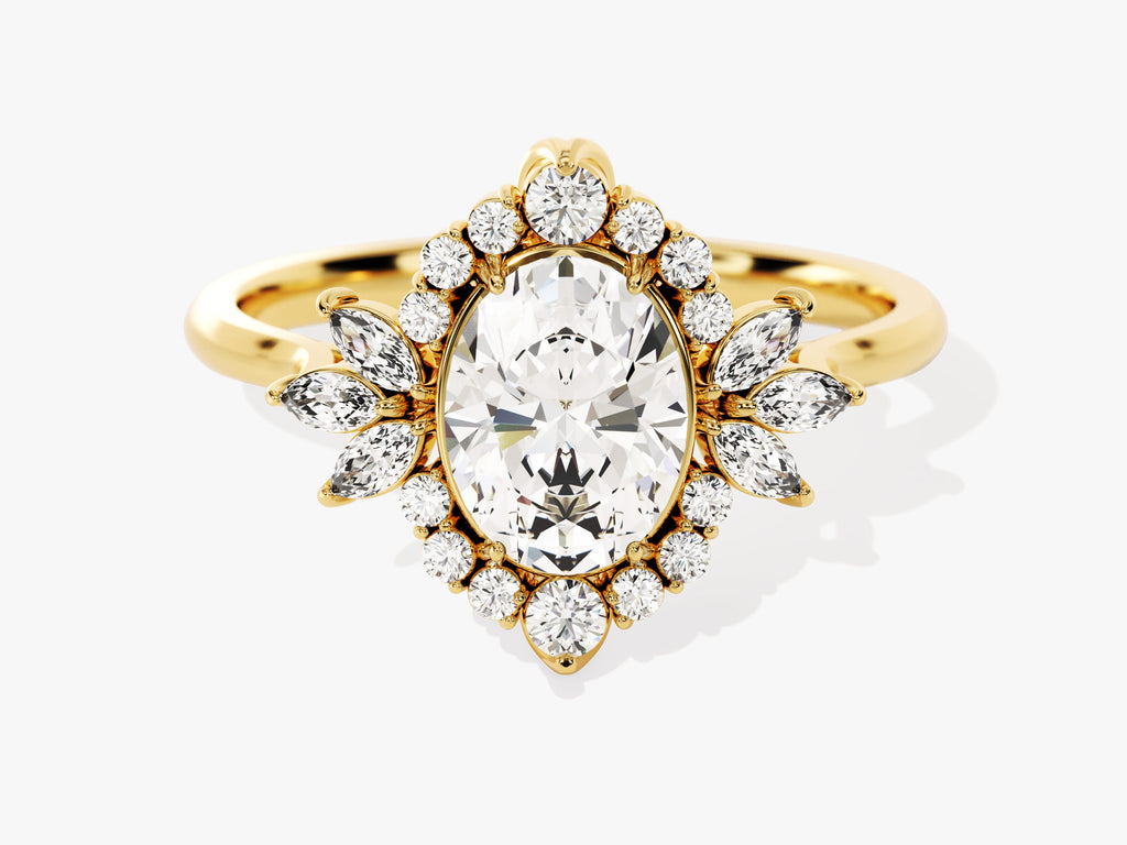 This Vintage Halo Oval Lab Grown Diamond Engagement Ring perfectly combines classic elegance and modern innovation. Crafted from a 1.50 CT lab-grown diamond, it exudes sophistication and sophistication, making it the ideal symbol of your commitment and love.