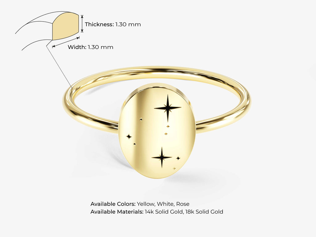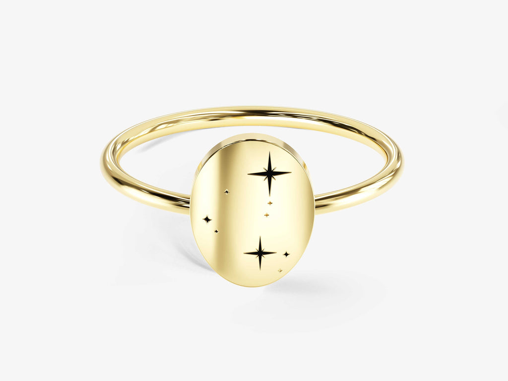 This delicate star signet ring which has gold vermeil, sterling silver and solid gold options is the perfect gift for birthdays, holidays, or other special occasions. Available in all zodiac signs, your loved one will enjoy this classic ring which can be worn as a subtle piece of jewelry during the day and which makes an unusual yet elegant choice for dressier outfits at night.